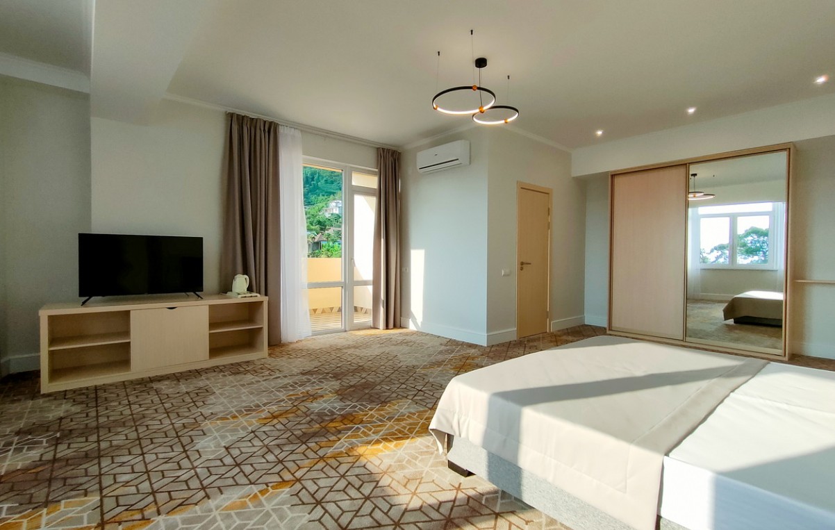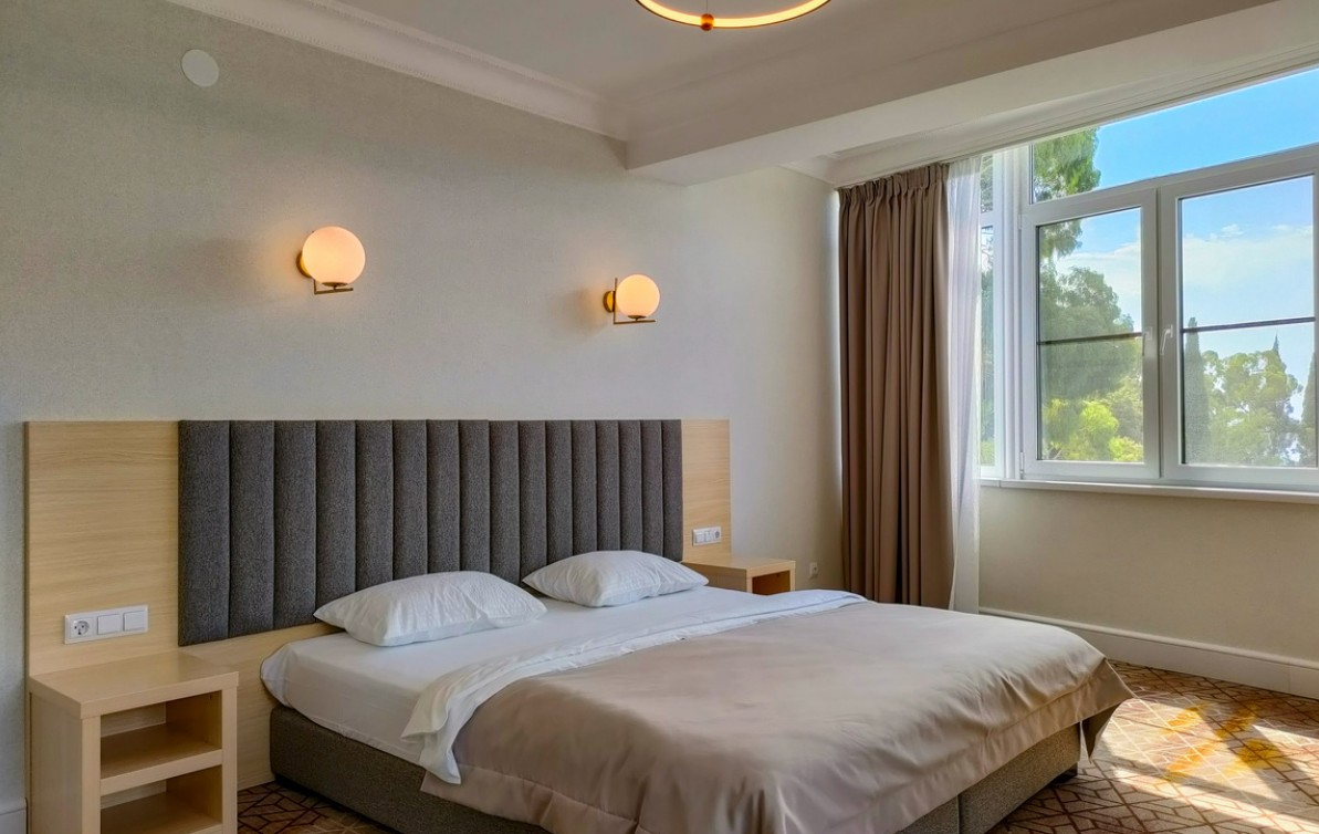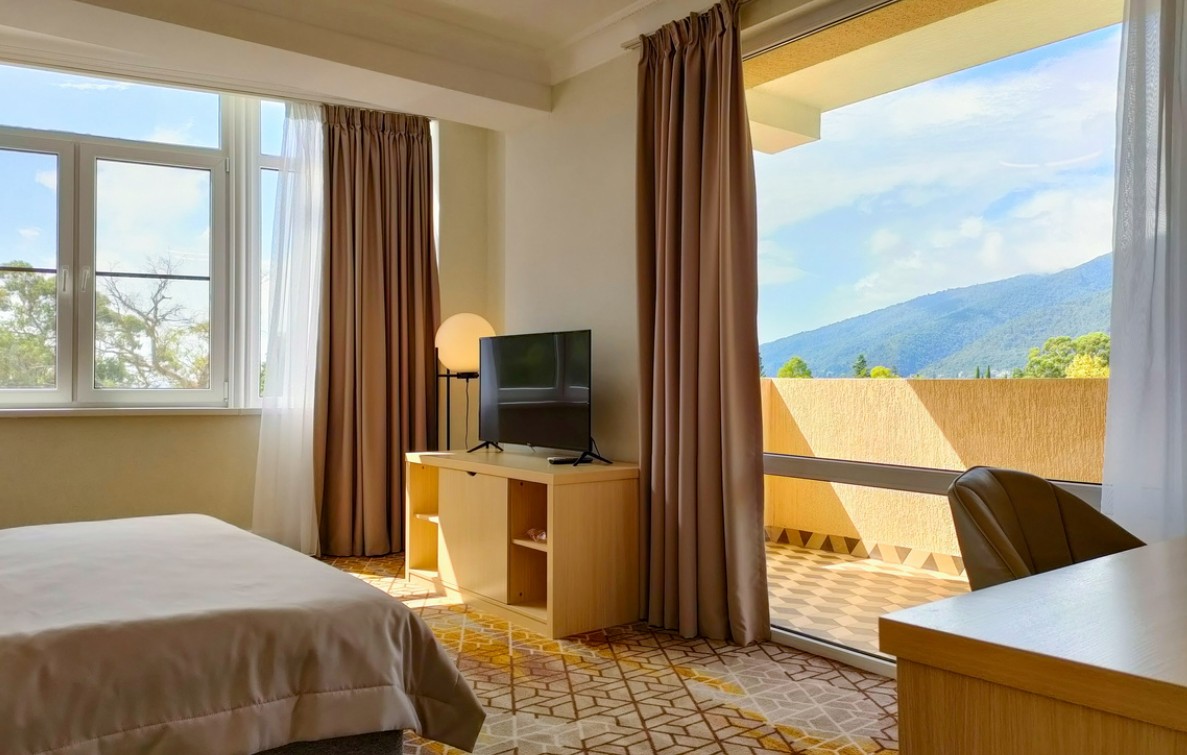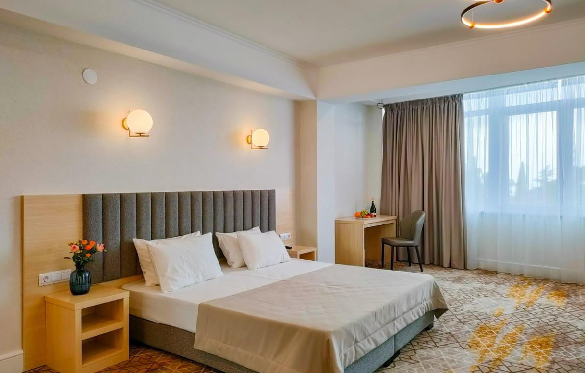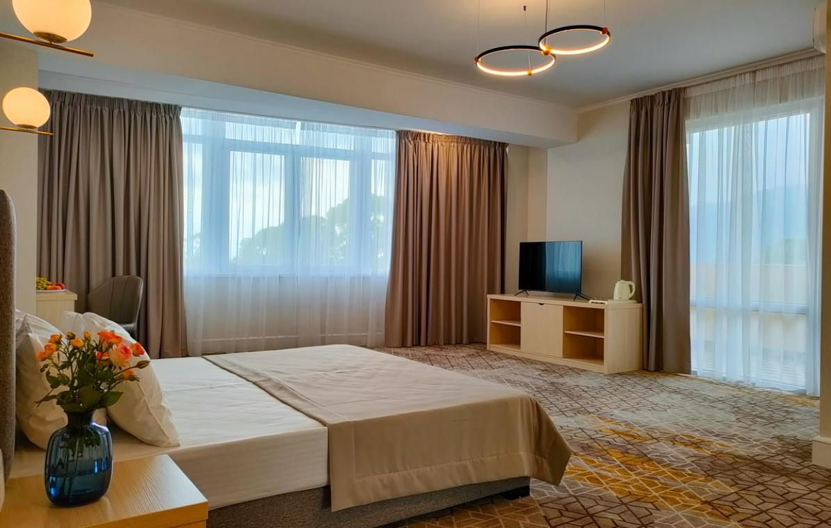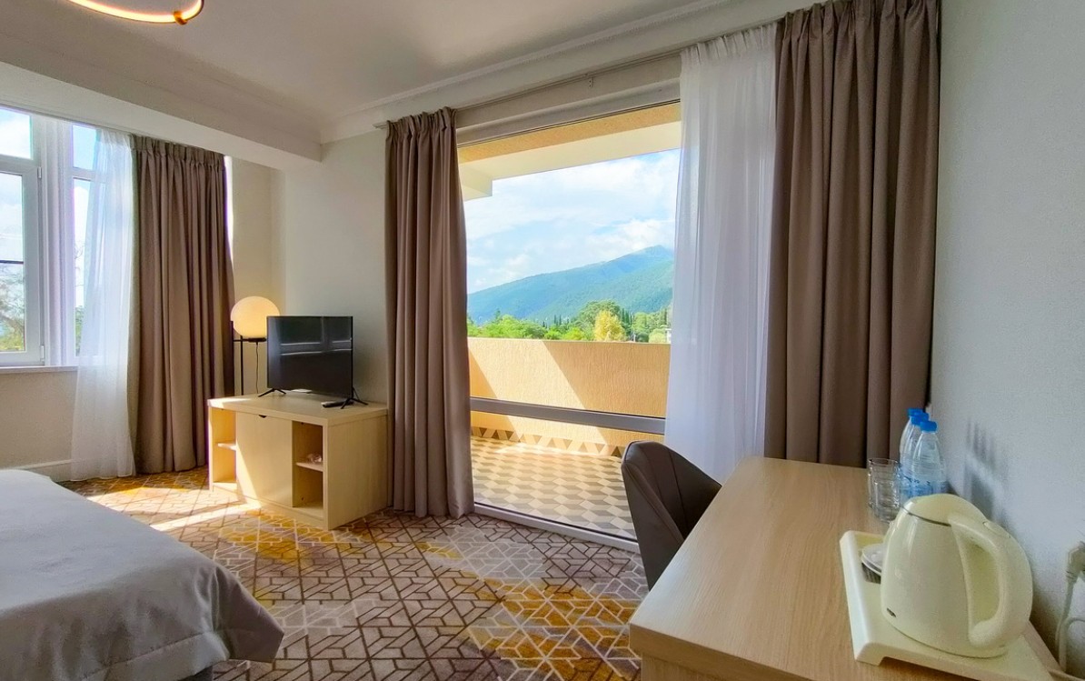 В комплектации номера с балконом спальня с двуспальной кроватью, ванная комната с душем и феном. К услугам гостей Wi-Fi, кондиционер, принадлежности для приготовления чая и кофе, телевизор, мини-холодильник, косметические наборы.