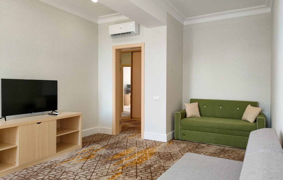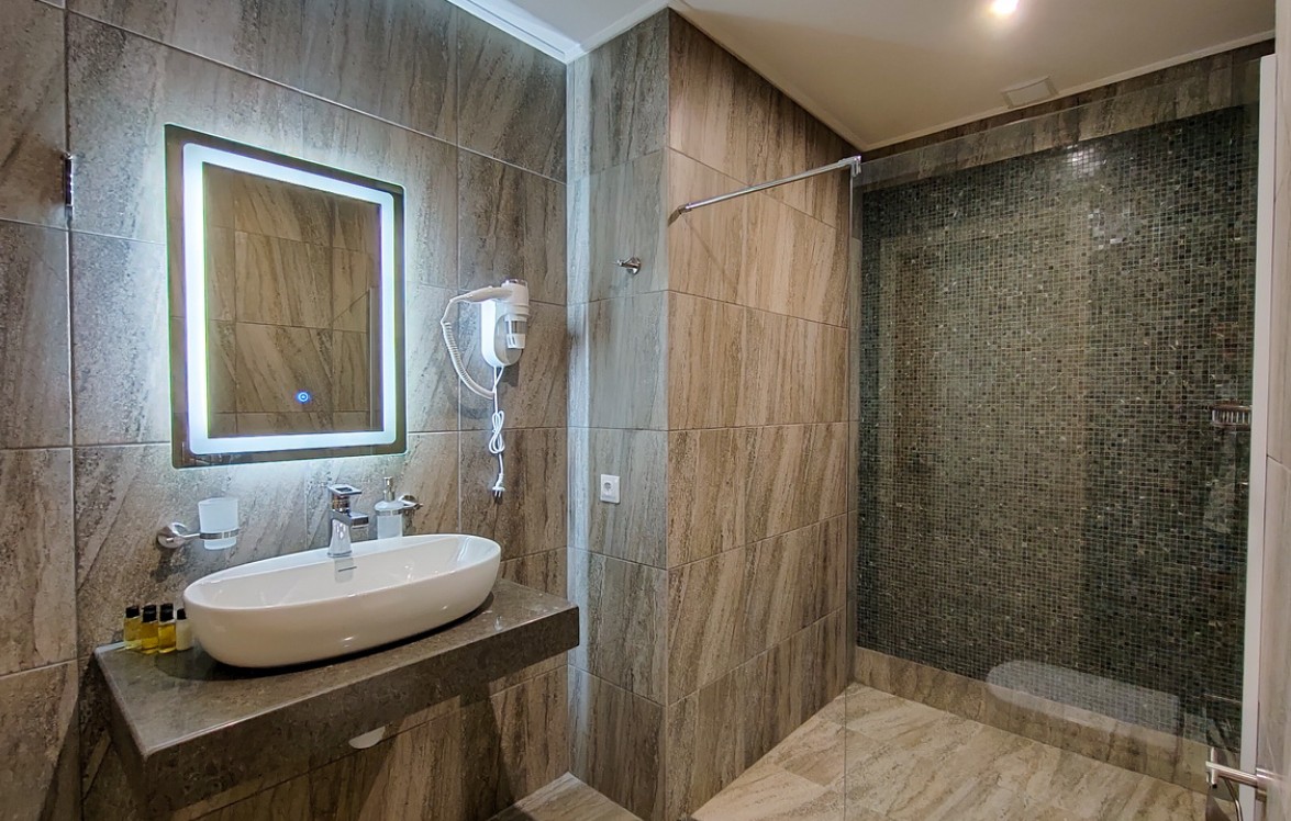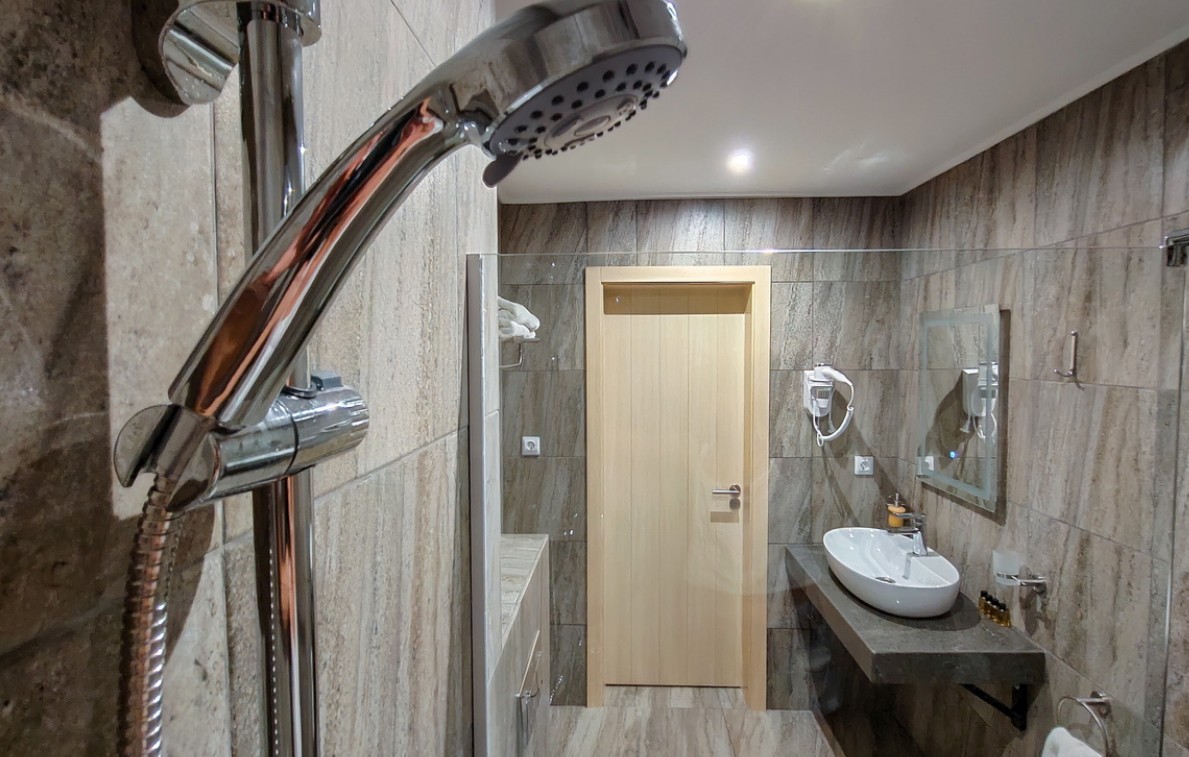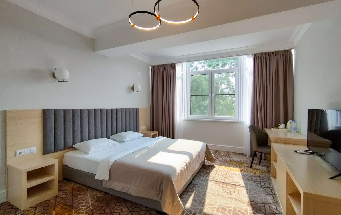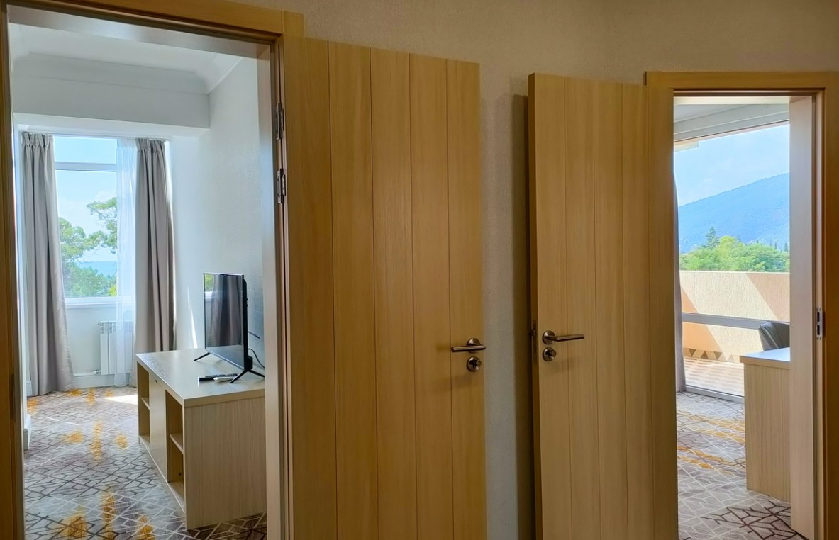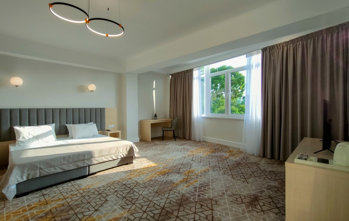 В комплектации номера с балконом спальня с двуспальной кроватью, ванная комната с душем и феном. К услугам гостей Wi-Fi, кондиционер, принадлежности для приготовления чая и кофе, телевизор, мини-холодильник, косметические наборы.
