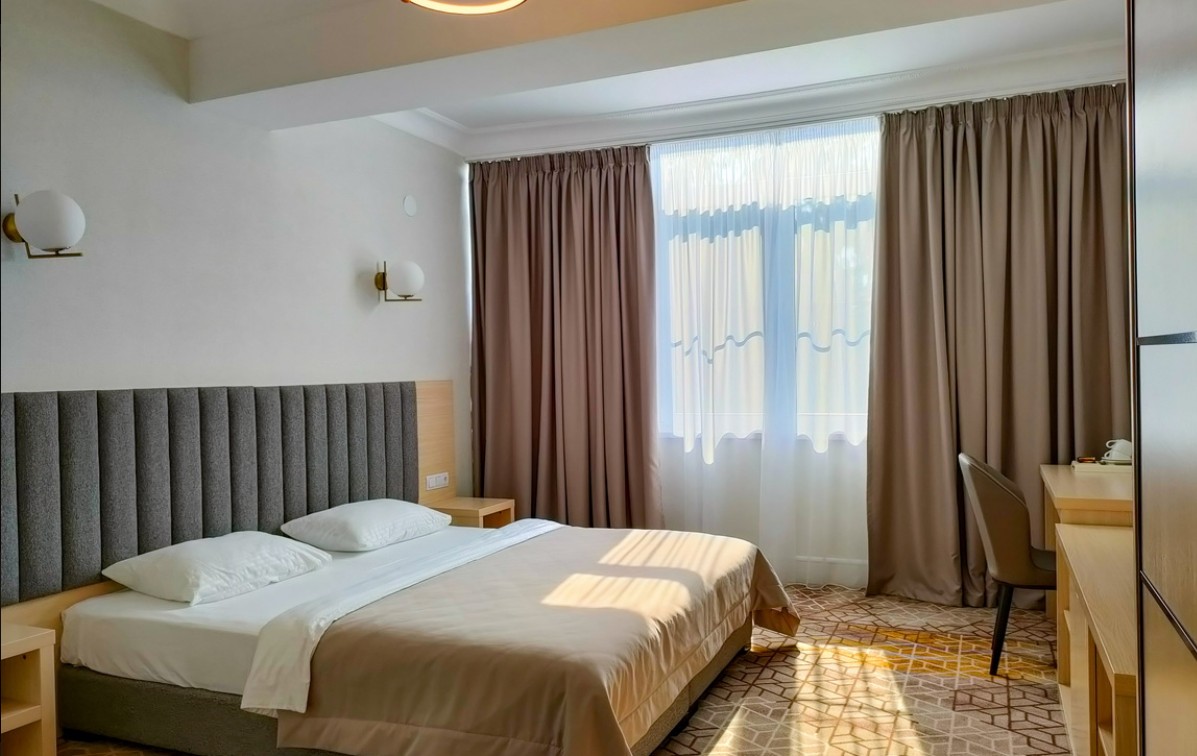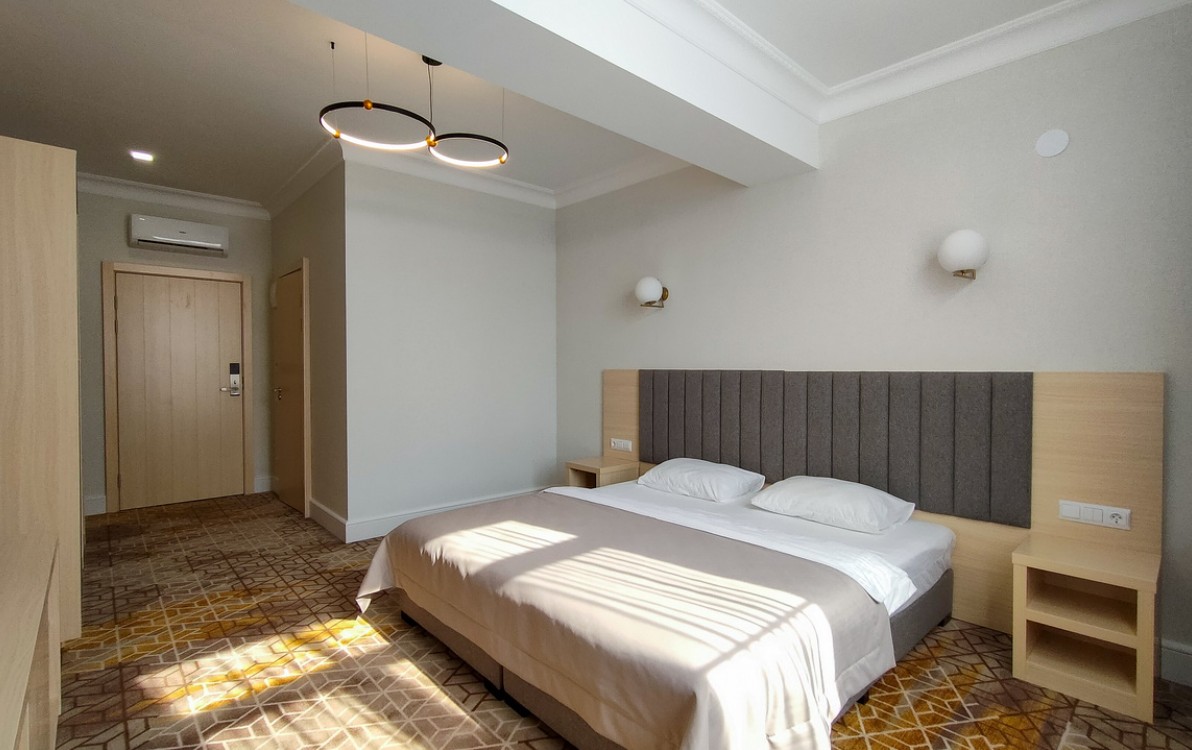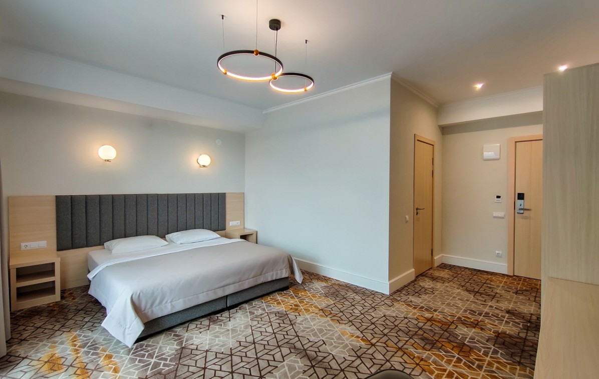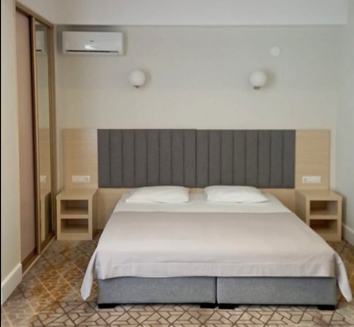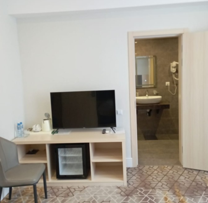 Номер состоит из спальни с двуспальной кроватью/2 односпальными кроватями и ванной комнаты с душем. В комплектации телевизор, кондиционер, Wi-Fi, сейф, мини-холодильник, фен.