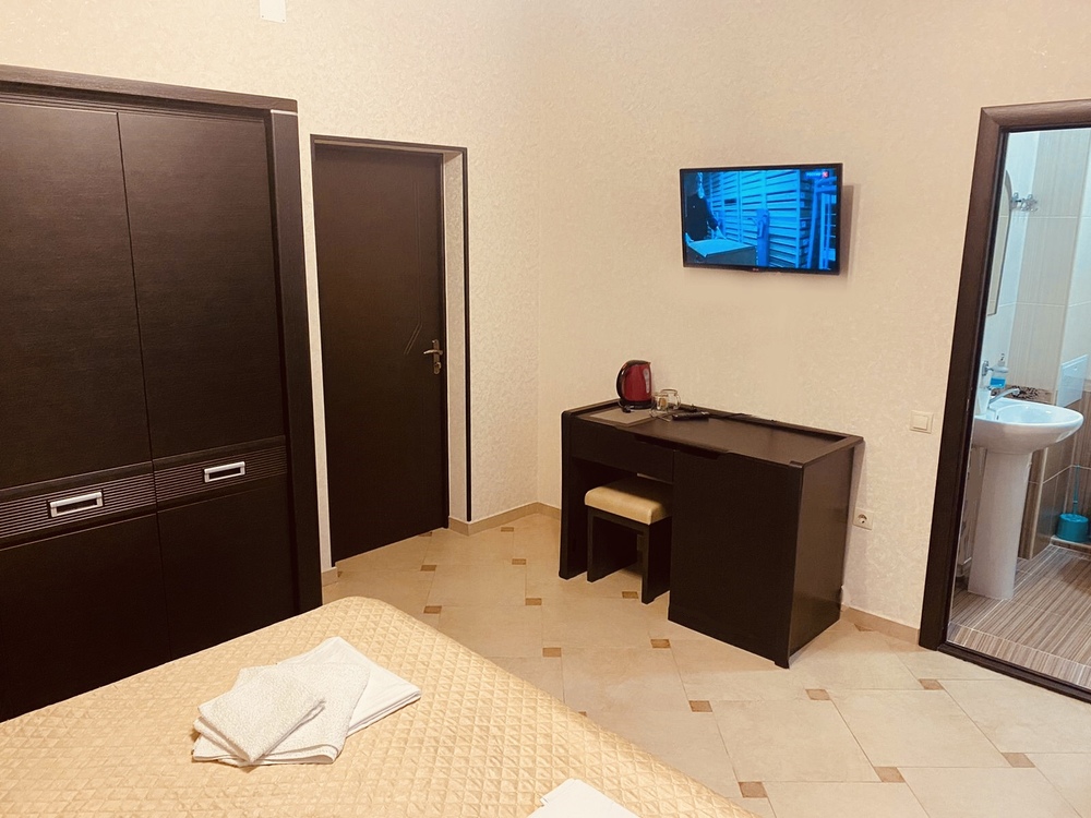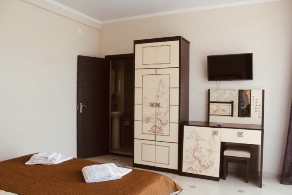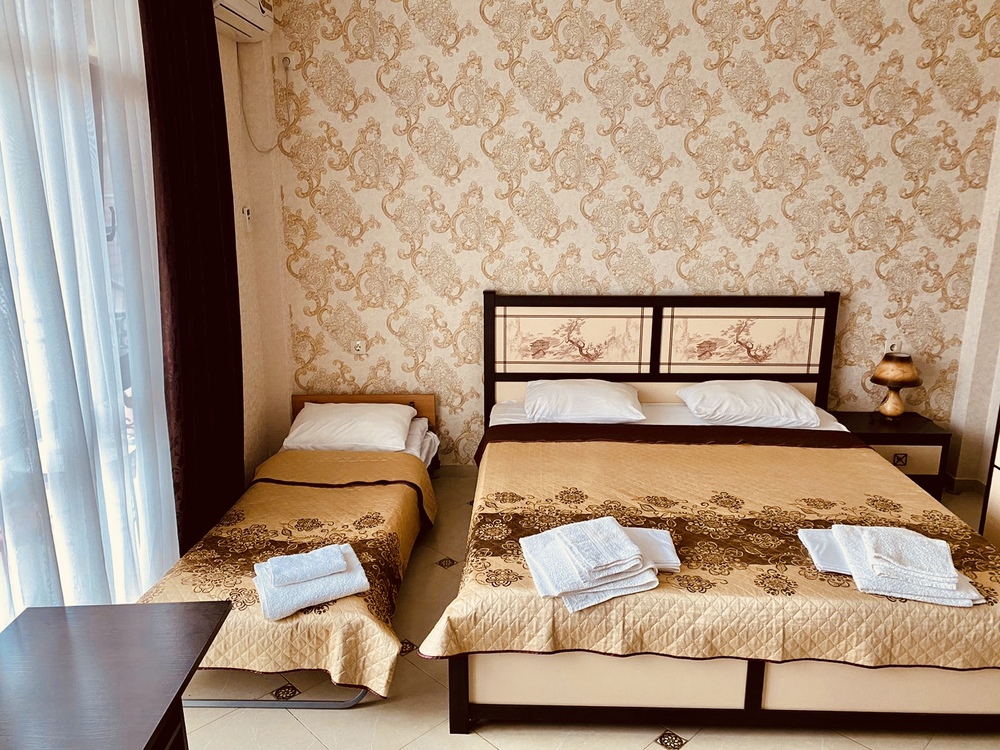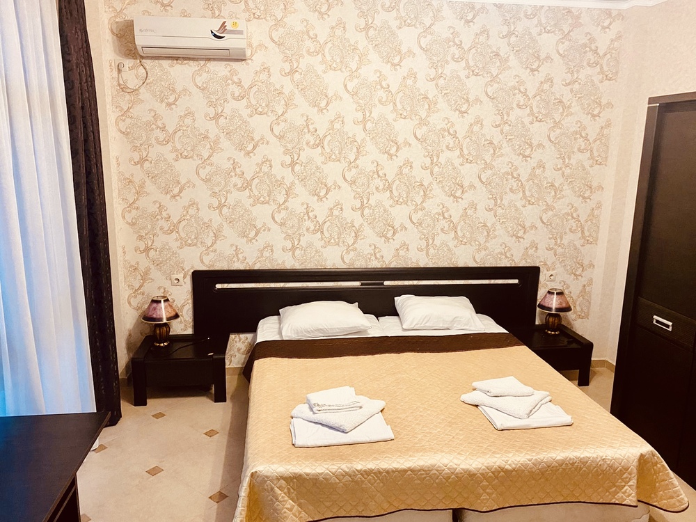 В комплектации номера двуспальная кровать/2 односпальные кровати, кондиционер, телевизор, беспроводной интернет. Возможно размещение на дополнительной раскладной кровати. Ванная комната с душем, феном (по запросу, при наличии), гигиеническими принадлежностями.