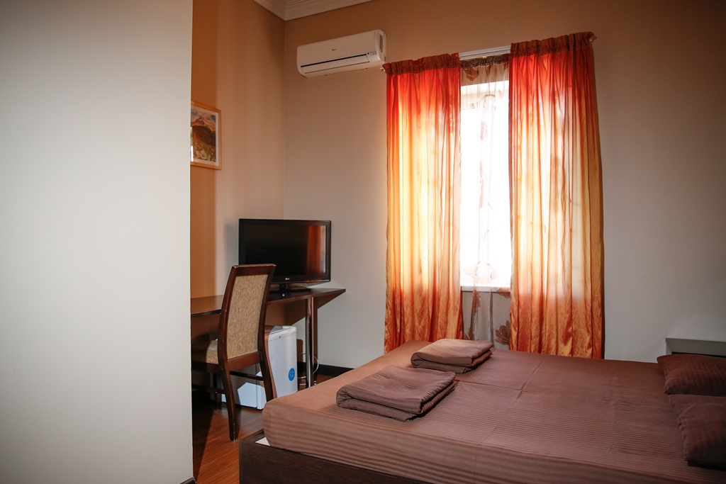 Отзывчивые сотрудники, всегда доброжелательные, помогали по любым вопросам. Заселили чуть раньше времени, потому что наш поезд приехал утром. Номера чистые, прохладные. Кондиционер, душ, холодильник — все рабочее. Как приятно после дня путешествий вернуться в номер на удобный матрас и белую постель) В отеле есть генератор, поэтому регулярное отключение света в Абхазии не пугало) Подруге на день рождения подарили бутылку игристого — спасибо!