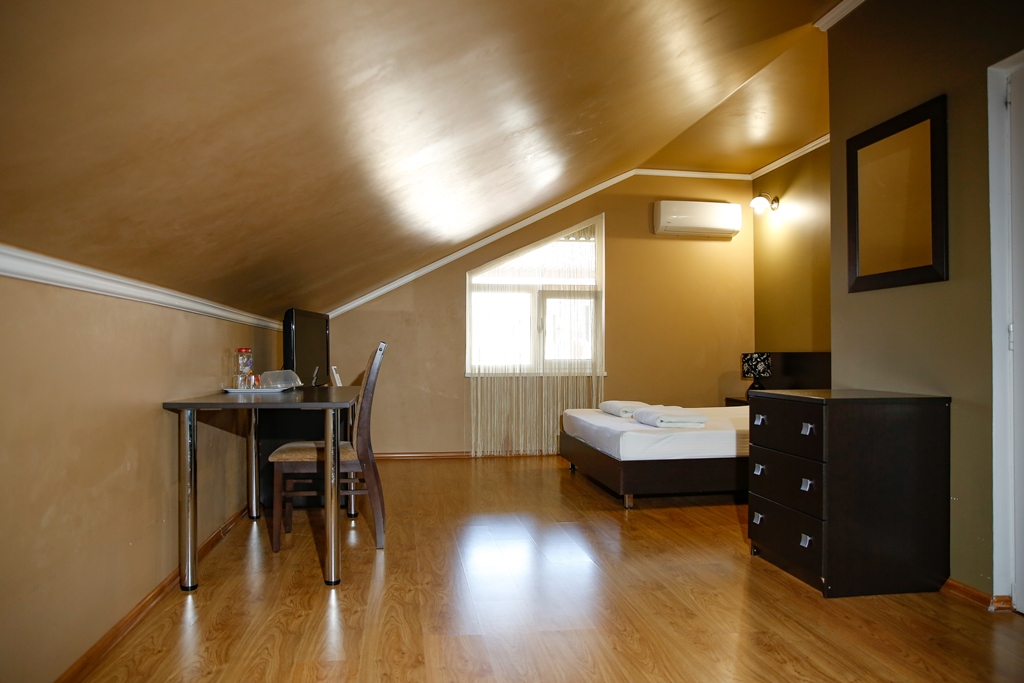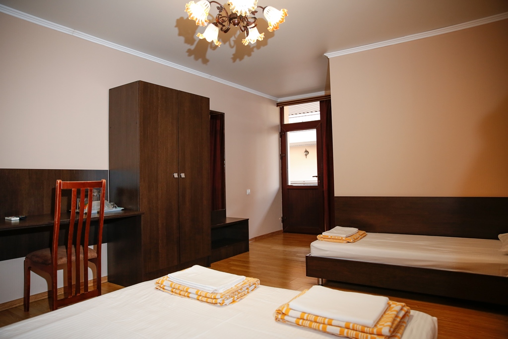 Один из немногих отелей в Сухуми , где номера комфортные с евро ремонтом, с постоянным вайфаем, светом и водой! Так как были наслышаны, то воды нет, то света, то кормят ужасно! В отеле меню было большое, кормили отлично, с утра каши, омлеты, бутерброды. Персонал хороший, отзывчивый. Номера убирают, чистые, постельное белье меняют, полотенца меняют раз в 2-3 дня, белье всё белое, сравнивая с российским курортом, хотя я была не на многих, это лучший пока отель. Есть парковка своя, море действительно в 2 мин.