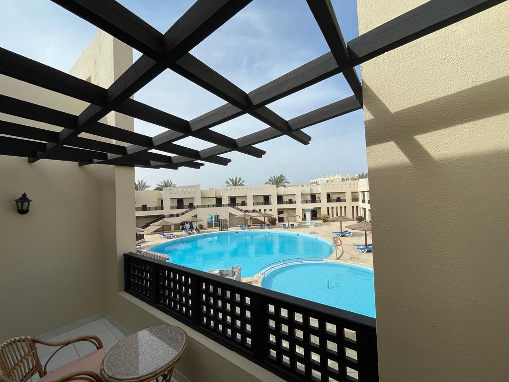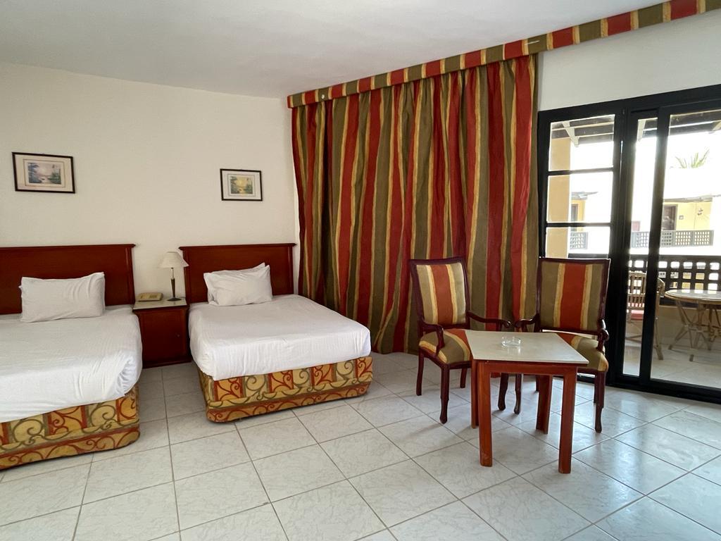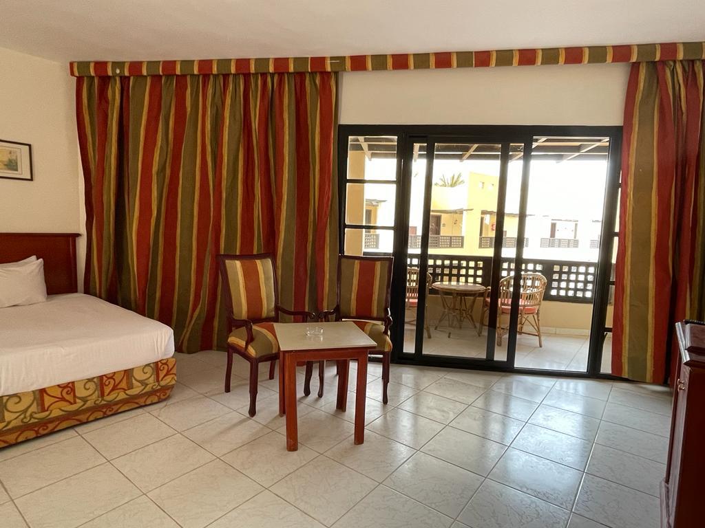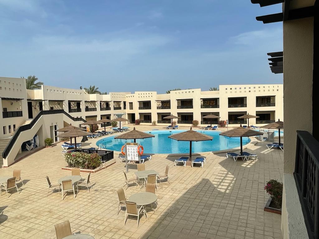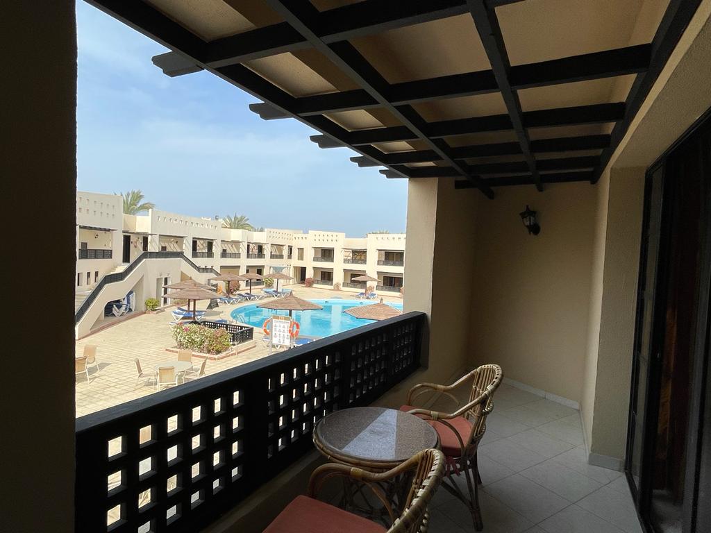 Отель хороший , все чисто , номера просторные ( возможно требуется обновить их ) но в целом это никак не влияет на качество отдыха . Ванна большая , балкон. Питание твердая 5; до пляжа нужно ехать на шаттле или пешком 12 минут по закрытой территории около отеля . На пляже свой огромный аквапарк ( очень много взрослых и детских горок) пляж песочек и кораллы , можно прямо без маски увидеть много рыбок , на пляже есть бар , соки конечно разводные (не советую )пляжные полотенца выдают , уборка номера каждый день , две бутылки воды в номер ставят . Персонал очень вежливый, доброжелательный . На территории отеля магазин - цены нормальные . Остались очень довольны отдыхом ! Ps не советуем кататься на верблюде на пляже ( стоит 15 долл с человека ! Считают даже маленького ребенка за полноценного человека ) - у туроператора брали экскурсию по Хургаде дневную - худшая трата времени , если ваша цель не магазины сувенировов и масла - отель предоставляет ланч боксы по просьбе заранее - были на ужине в отдельном ресторане ( оказался пляжный бар ) но в целом приятно , на пляже, вечер, обслуживание официант(остались довольны) еда плюс минус как и в обычном ресторане - вай фай работает плохо . У нас ловил только на улице - но для нас это был даже плюс ( провели время без новостей и лишней инфо )