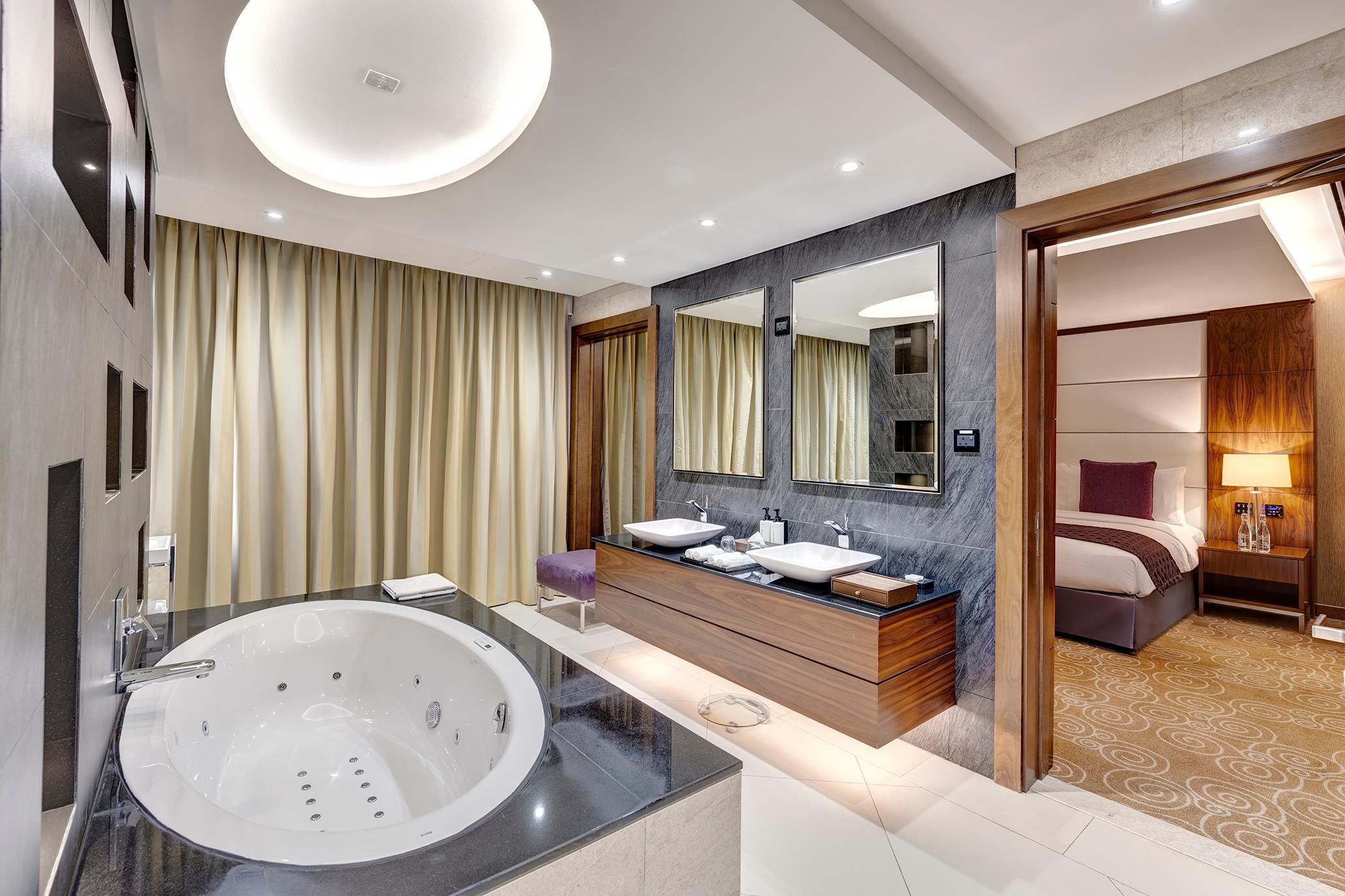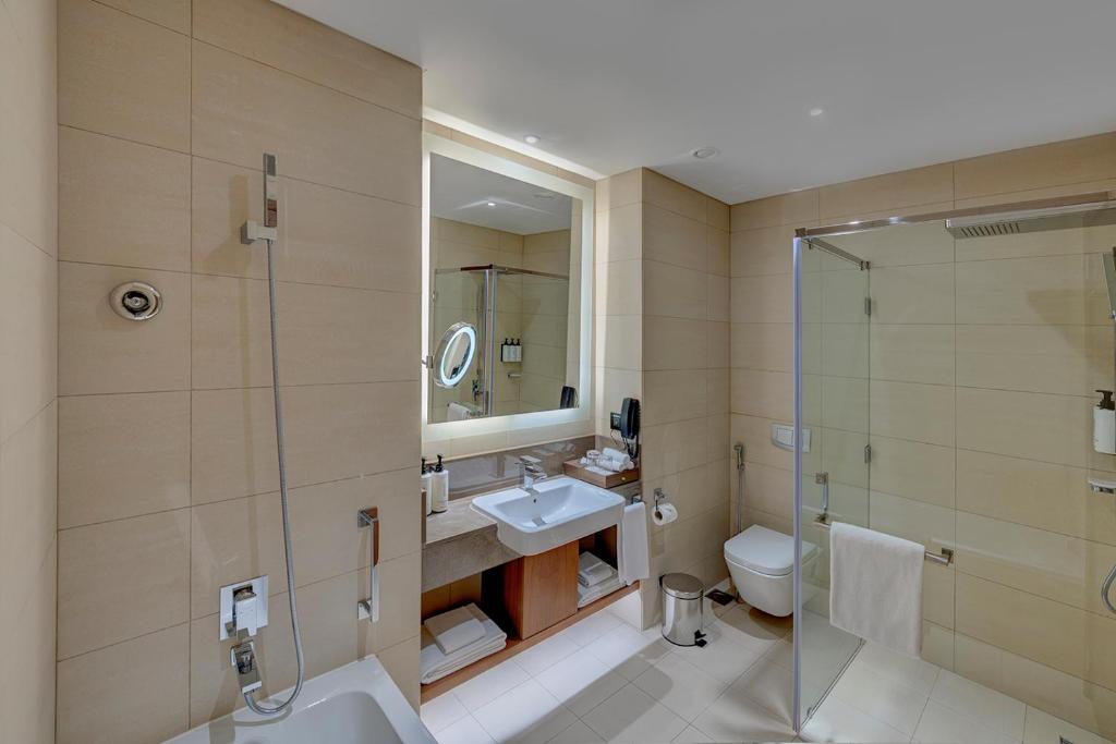 В комплектацию номера входит спальня с 2 односпальными или двуспальной кроватью размера king-size, ванная комната с душем и ванной. К услугам гостей телевизор, кондиционер, мини-бар, чайно-кофейные принадлежности, фен, набор гостиничной косметики. В числе прочих удобств халаты, тапочки, меню подушек и гладильные принадлежности.