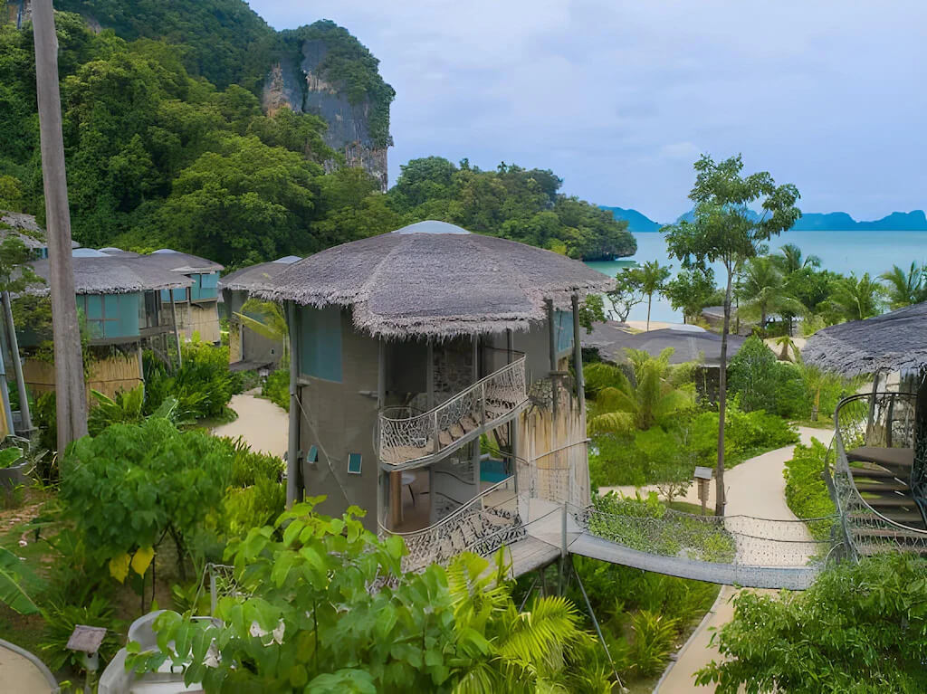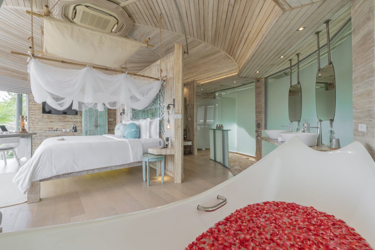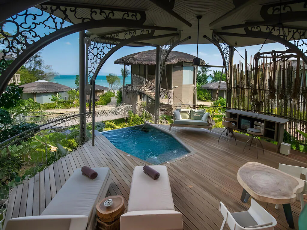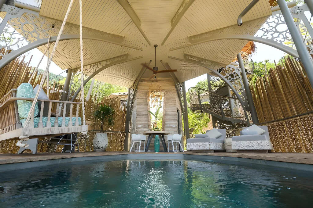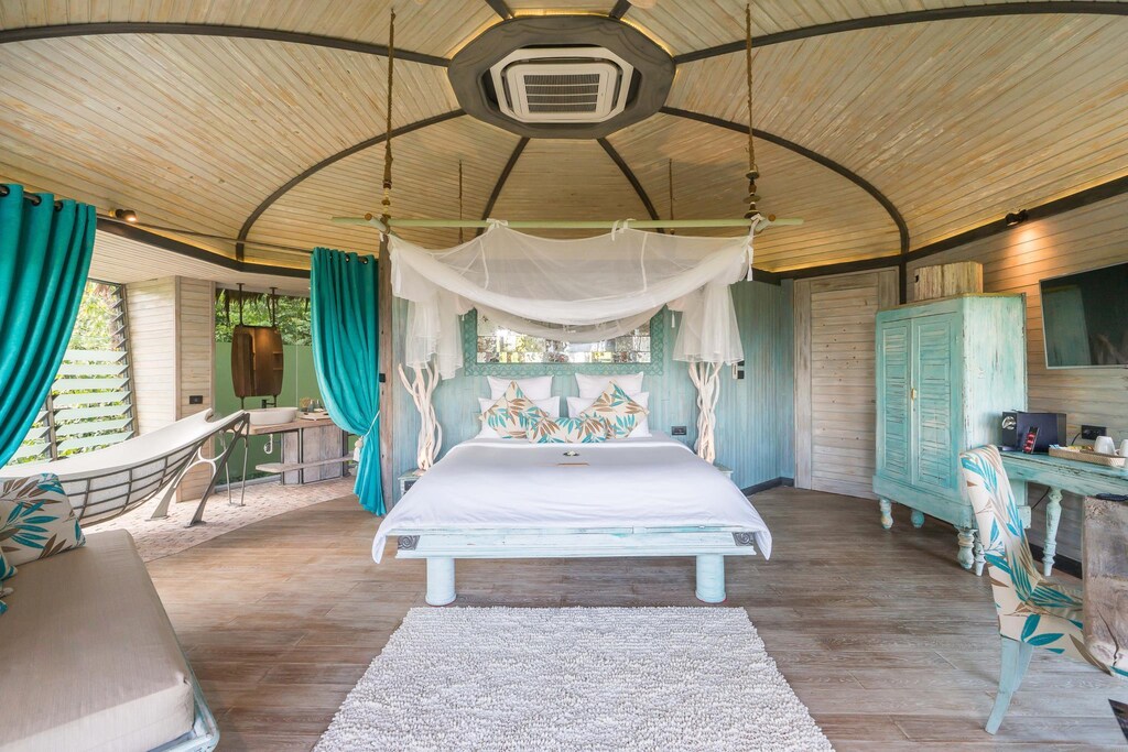 Комфортабельная вилла расположена рядом с пляжем, оборудована террасой, бассейном, спальней с двуспальной кроватью king-size, ванной комнатой с ванной и душем, обеденной зоной, качелями, кушетками. В числе удобств Wi-Fi, кондиционер, вентилятор, телевизор, весы, мини-бар, сейф, банные принадлежности, халаты, тапочки, капсульная кофемашина, меню подушек. Вилла построена по принципу TreeHouse Villa, оба этажа расположены на одном уровне.