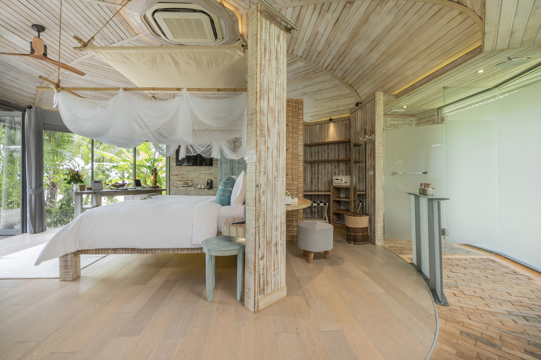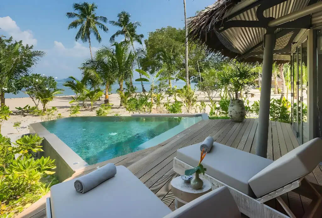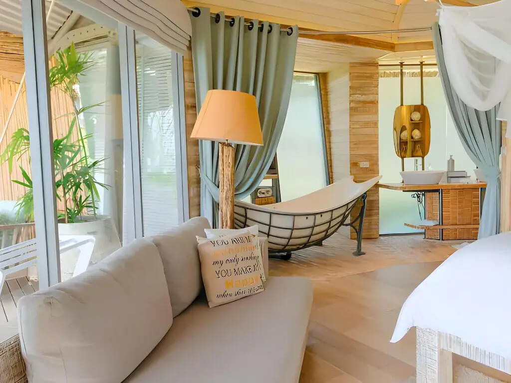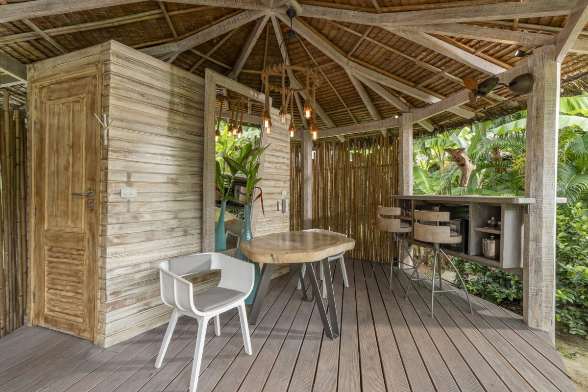 Комфортабельная вилла расположена рядом с пляжем, оборудована террасой, бассейном, спальней с двуспальной кроватью king-size, ванной комнатой с ванной и душем, обеденной зоной, качелями, кушетками. В числе удобств Wi-Fi, кондиционер, вентилятор, телевизор, весы, мини-бар, сейф, банные принадлежности, халаты, тапочки, капсульная кофемашина, меню подушек. Вилла построена по принципу TreeHouse Villa, оба этажа расположены на одном уровне.