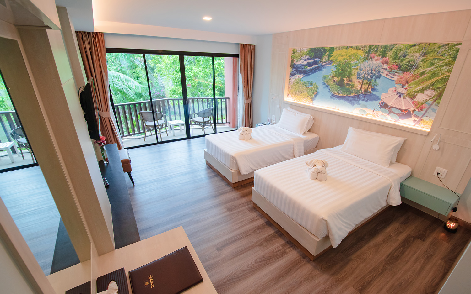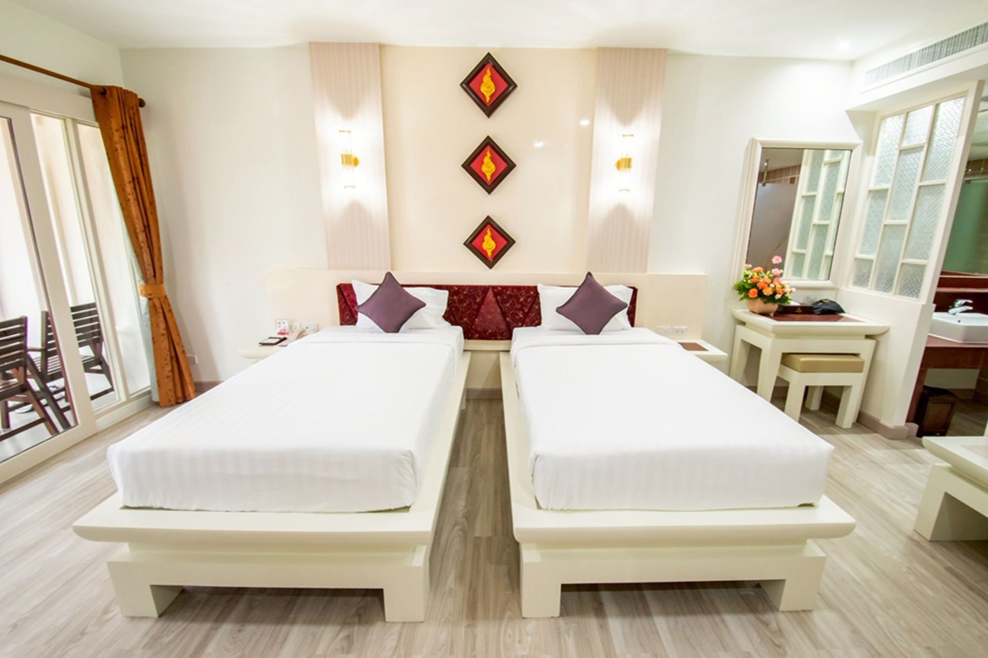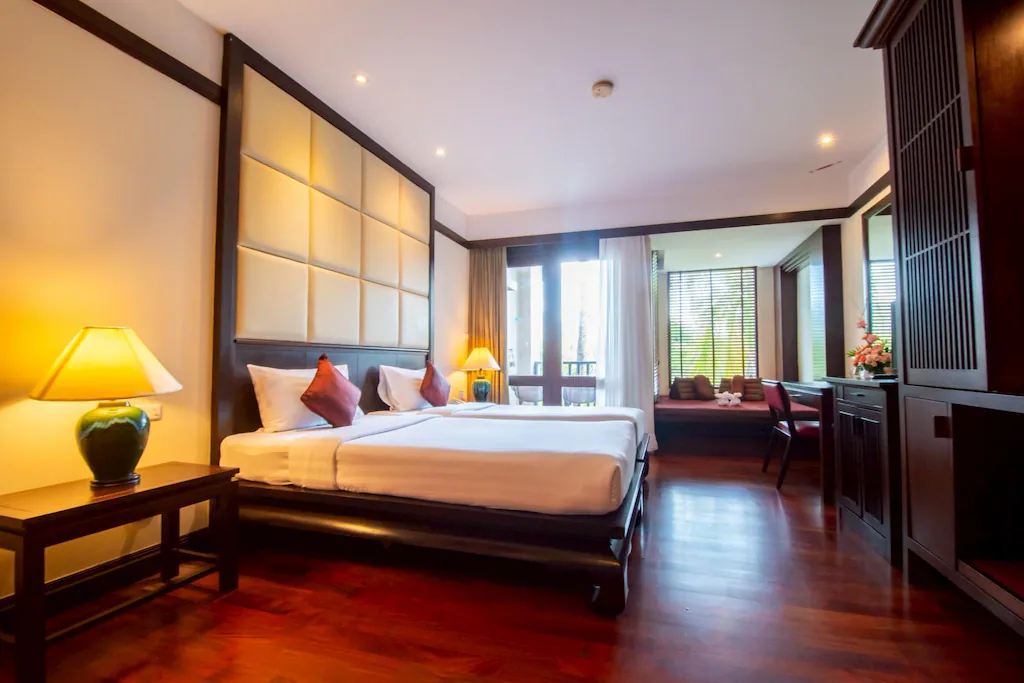 Отель непривычный для Таиланда, скорее напоминает отели все включено в Египте или Турции. Достоинства: недалеко от моря, красивая, ухоженная, зеленая территория с двумя бассейнами, водопадом и горками, множество уютных беседок, достаточное количество шезлоногов у бассейна, довольно большой и чистый номер с балконом и отдельной душевой кабиной, тихо (все корпуса вглубине территории, вдалеке от дороги). Недостатки: довольно дорого для Таиланда, причем особых скидок на платформах для этого отеля нет, средний завтрак (вроде всего много, но достаточно повторений блюд, не очень вкусно, кофе и чай вообще пить невозможно, помещение переполнено). По совокупности достоинства превышают недостатки. Отель можно порекомендовать, если не пугает завышенная цена.