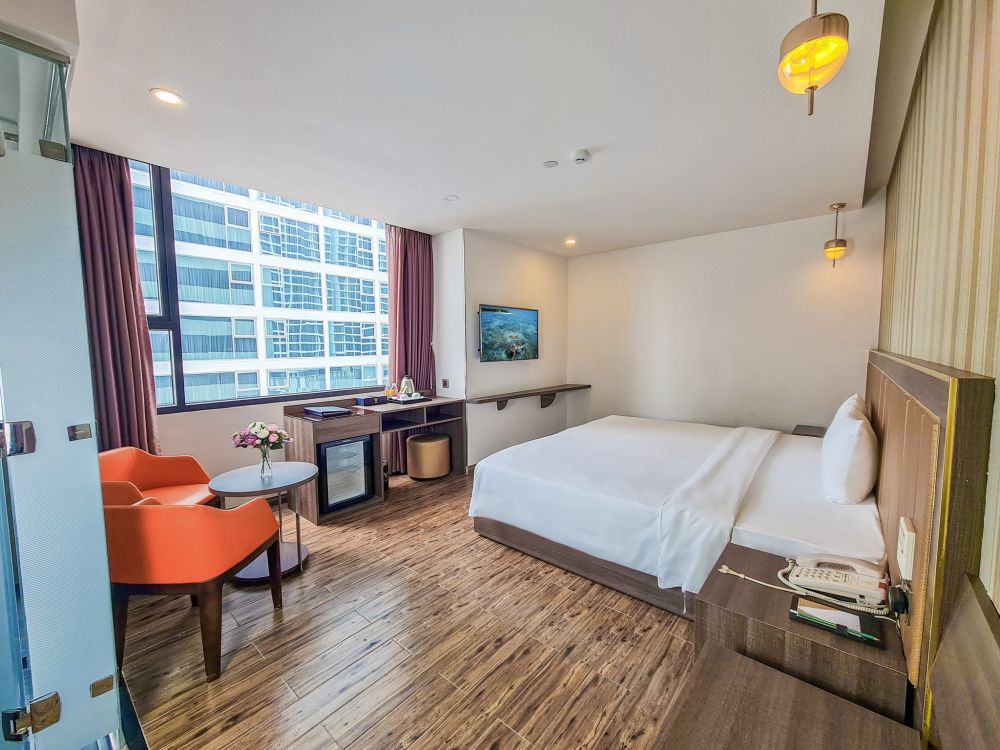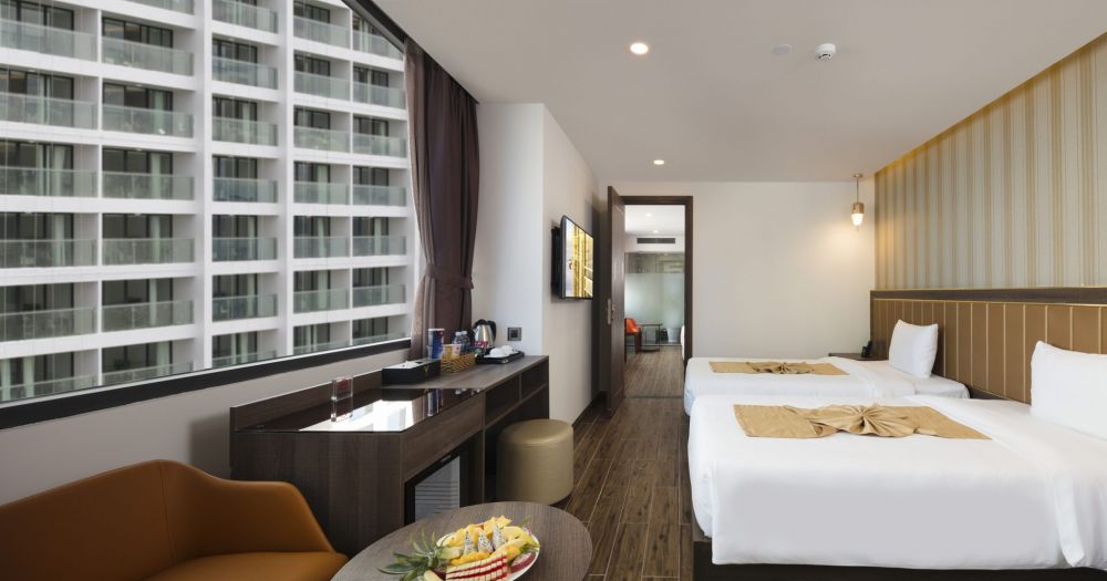 Однокомнатный номер укомплектован двуспальной/2 односпальными кроватями, кондиционером, беспроводным интернетом, мини-баром, сейфом, телевизором, телефоном, набором для приготовления чая и кофе. Ванная комната с душем, феном, тапочками, халатами, гостиничной косметикой. Вид на город и внутренний двор.
